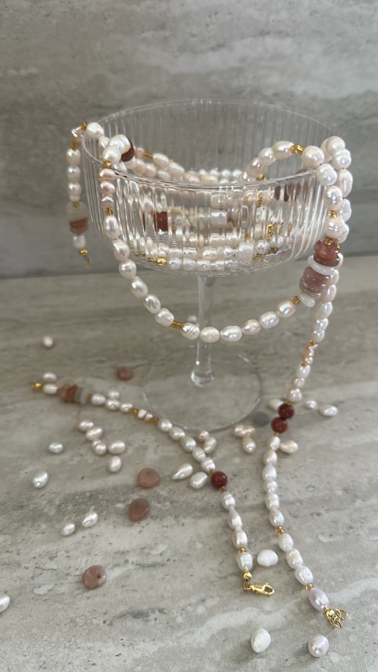 Pearls with a soft touch of romance. Delicate details with blush toned accents.