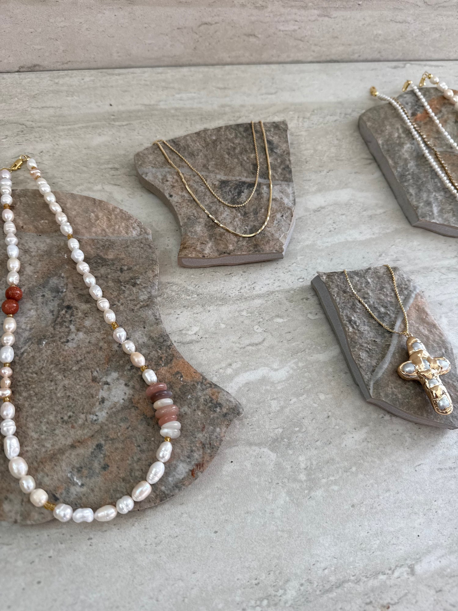 Inspired by the transition from summer to fall, this collection features pink, wine, and autumn tones. Designed with simple, layer-friendly pieces, each jewel adds a touch of sparkle to your cozy knits—capturing the beauty of the season.